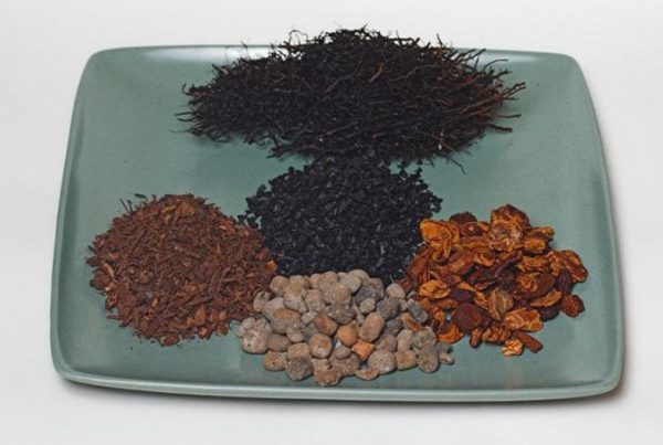 - 으깬 침엽수 나무껍질, 이끼, 고사리 뿌리줄기 각 1부분;