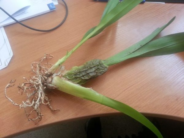 - 죽은 뿌리줄기는 제거해야 합니다. 뿌리가 손상되었다면 뿌리를 제거하고 잘게 부순 숯을 뿌리세요. 그런 다음 식물을 말려야 합니다.