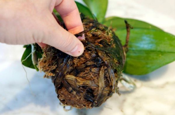 - 난초가 자랄 용기에 준비된 흙 혼합물을 채우고 꽃을 심습니다.