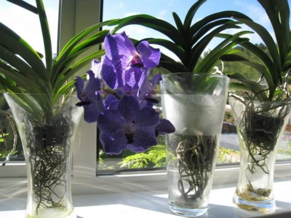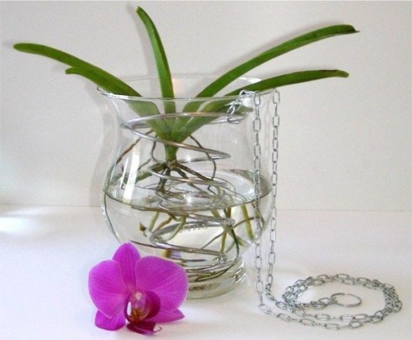 물에 심는 꽃이라면 반다종이 가장 좋습니다. 흔한 호접란도 사용할 수 있지만, 야생에서 반다종은 나무나 식물에 붙어 자라며 빗물의 수분을 흡수합니다. 유리 화분에 심은 이 종류의 난초를 실내에서 키우려면 최소 60%의 습도를 유지해야 합니다.