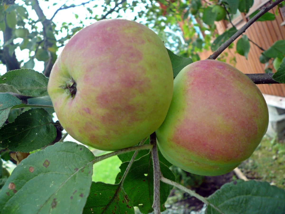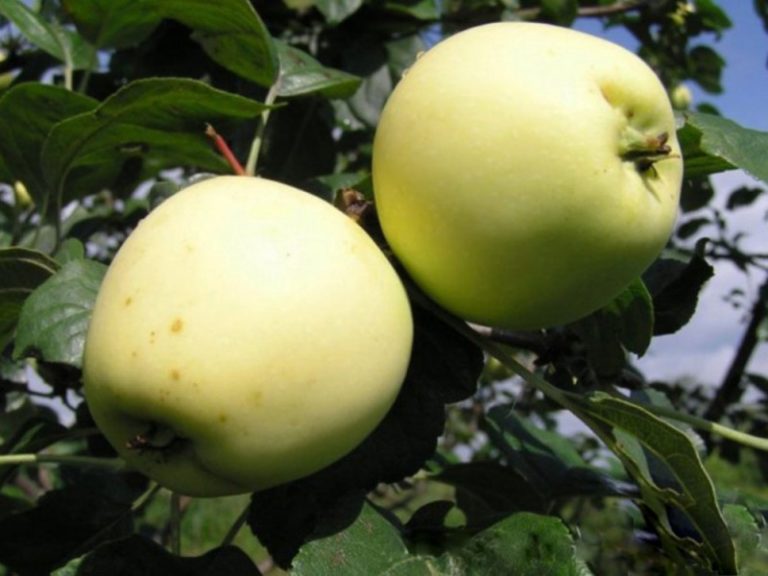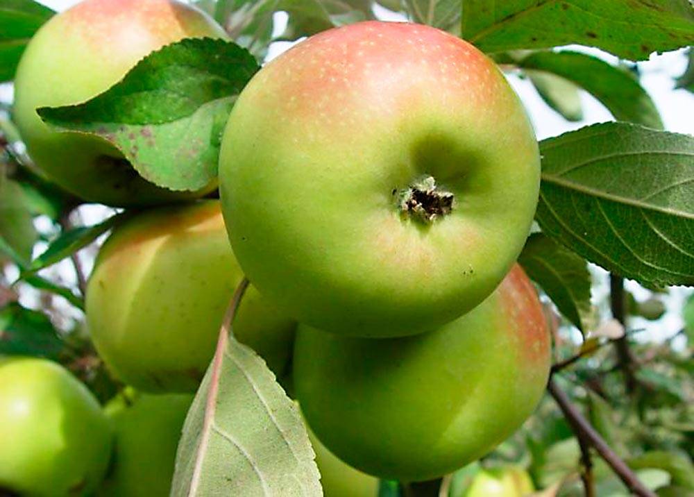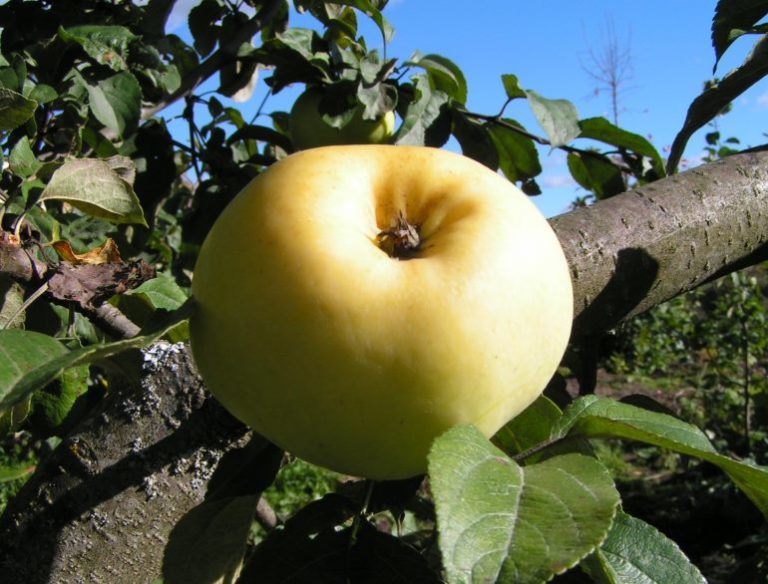 열매는 둥글고 끝이 뾰족한 꽃받침을 가지고 있습니다. 이 품종의 사과는 익으면 연한 녹색을 띠며, 과육은 고운 입자로 단단하고 눈처럼 하얀색입니다. 달콤한 맛과 독특한 향을 지닙니다. 이 품종의 사과는 평균 150~170g이며, 350~420g에 달하는 것도 있습니다. 특징: