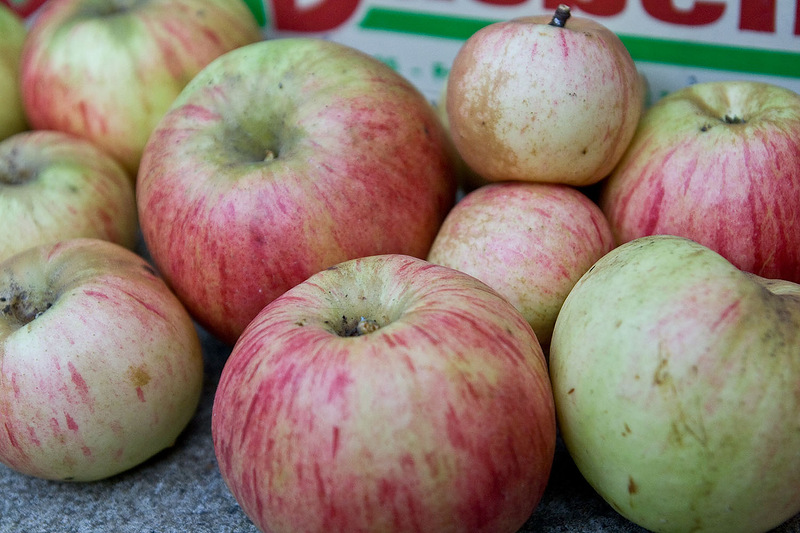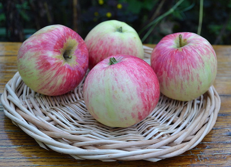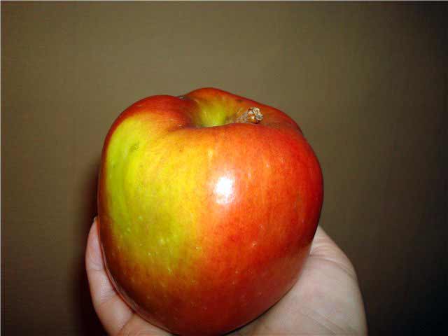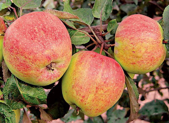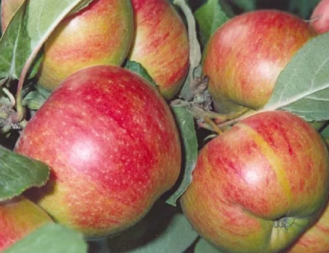 10년 후 굵은 타원형 꼭지가 돋아나는 왕성한 수형을 가진 사과입니다. 상업적으로 성숙했을 때 무게는 115~145g에 달하며, 둥글고 원뿔 모양입니다. 껍질은 황록색이며 라즈베리색 줄무늬와 회색 껍질 밑 부분이 있습니다. 껍질 밑 부분은 황백색이며 중간 정도의 밀도를 가지고 있으며, 달콤하고 시큼한 맛과 계피 향이 납니다. 특징: