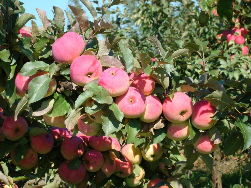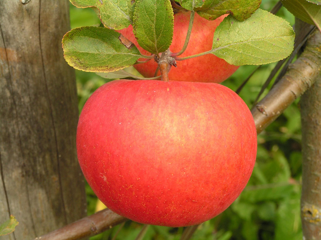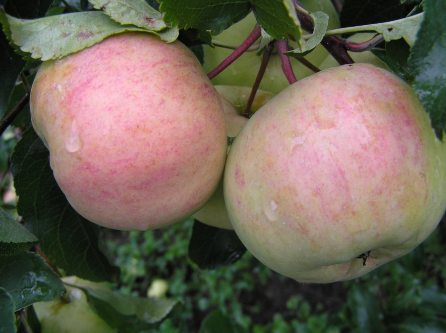 수확기인 9월 중순에서 하순에는 교배종 사과의 열매가 연한 노란색을 띱니다. 2~3주 안에 사과는 은은한 분홍색으로 변합니다. 익은 사과는 즙이 많고 달콤하며 약간 시큼합니다. 심은 사과나무는 4년차부터 열매를 맺기 시작하며, 수확량은 계절 내내 일정하게 유지됩니다.
