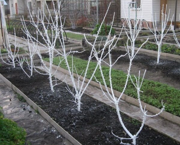- 백색화. 소석회를 줄기와 골격 가지의 기부에 바르면 식물을 자외선으로부터 보호할 수 있습니다.