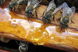 가을에는 봉지에 담긴 설탕물을 벌에게 먹이는 것도 인기가 있습니다. 모이통처럼 캔버스에 작은 구멍을 냅니다. 시럽을 보통 30x40 크기의 두꺼운 비닐 봉지에 붓고 캔버스 위에 놓습니다. 가는 바늘로 여러 개의 작은 구멍을 뚫을 수 있습니다. 하지만 벌이 먹이를 발견하면 스스로 봉지에 구멍을 뚫기도 합니다.