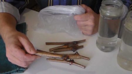 접목 과정에 사용되는 모든 도구는 깨끗이 세척하고 알코올로 처리해야 합니다. 접목 일주일 전에 접수를 준비합니다. 염색 과정은 다음과 같이 진행됩니다.