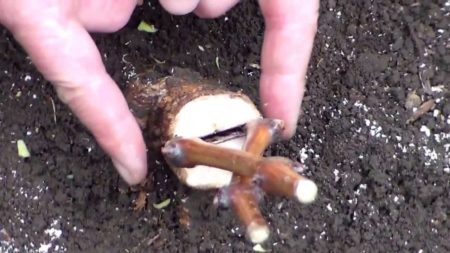 - 잘라낸 부분은 너무 길어서는 안 되며, 표면에 새싹이 두 개만 있으면 충분합니다.