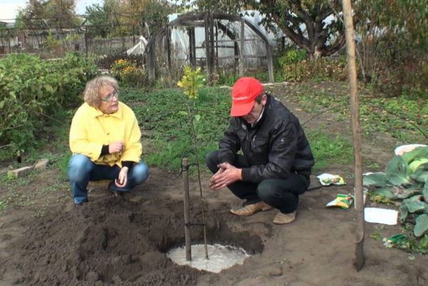 가을에 심은 사과나무는 거의 관리가 필요하지 않습니다. 이 시기에는 비료가 필요하지 않습니다. 모든 비료는 심기 구덩이를 준비하는 동안 투입되었습니다. 가을에 비가 오는 경우에도 물을 줄 필요가 없습니다. 건조한 날씨에는 일주일 후에 물뿌리개로 물을 충분히 주어야 합니다. 그 후에는 물주는 빈도와 물의 양을 줄여야 합니다. 물을 너무 많이 주면 뿌리가 썩을 수 있습니다.