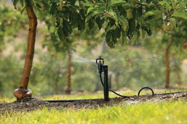나무 주위에 작은 구멍을 파고 물을 붓습니다. 구덩이가 완성되면 흙으로 채웁니다. 넓은 면적과 큰 나무에는 호스를 사용하는 것이 좋습니다. - 경사지에는 스프링클러 관개가 이상적입니다.
