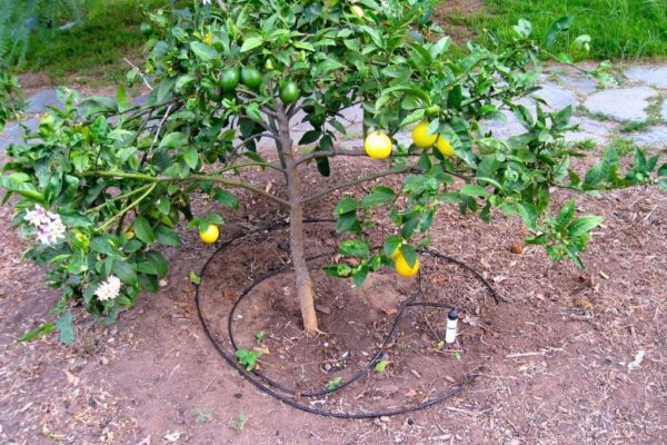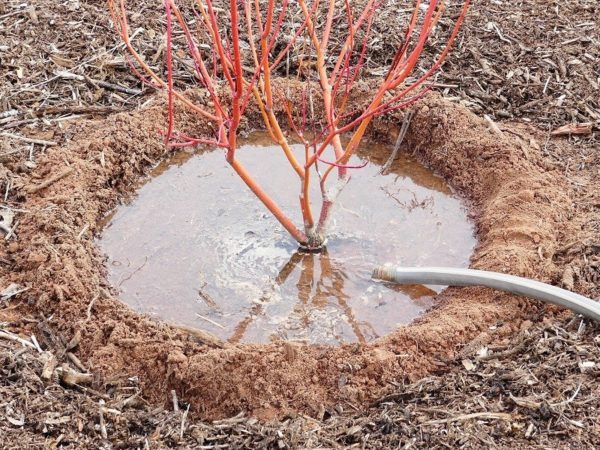 나무 주위에 홈을 파고, 쇄석이나 모래를 채운 후 물을 줍니다. 이 방법은 토양의 딱딱함을 방지하고 산소를 풍부하게 합니다. 겨울에는 우물을 토탄으로 덮습니다.