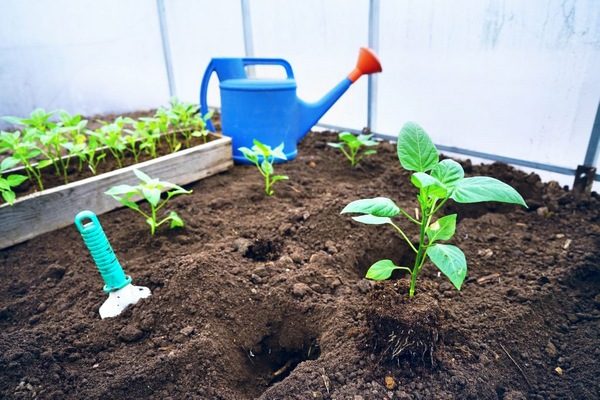 고추는 실내에서 1제곱미터당 2~8개의 모종을 심고, 모종 간 간격은 70~70cm로 합니다. 모종이 자리를 잡고 첫 잎이 나기 시작하면 검사를 실시하여 시들거나 손상된 잎을 제거합니다. 통풍을 위해 첫 번째 포크 아래에서 자라는 새순과 잎은 제거합니다.