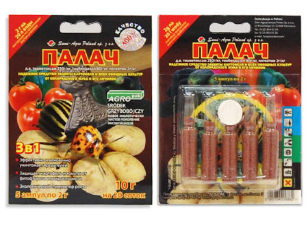 콜로라도 감자좀 방제 제품인 팔라크(Palach)를 사용해 본 사람들은 감자, 토마토, 정원 식물에 단일 제품을 사용할 수 있다는 점을 칭찬합니다. 정원사들도 단 한 번의 처리만으로도 원하는 효과를 얻을 수 있다는 점을 높이 평가합니다.