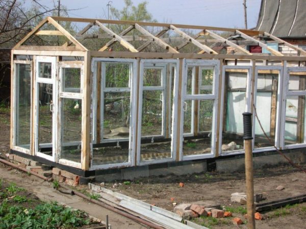 작업을 시작하기 전에 사용 가능한 수량을 다시 계산하세요. 창틀 미래 구조물의 치수를 계산합니다. 이 단계에서는 모든 것이 전적으로 건축주의 상상력에 달려 있습니다. 프레임이 많은 경우, 나사를 사용하여 투명한 베이스 박스를 만들고 나머지 프레임으로 덮을 수 있습니다. 프레임이 한두 개뿐인 경우, 바닥은 판자로 만들고 프레임은 구조물의 윗부분만 덮습니다.