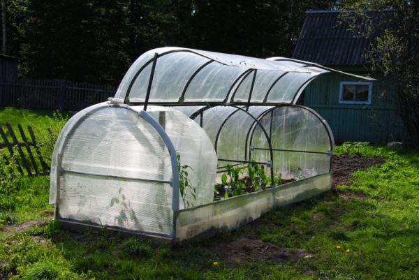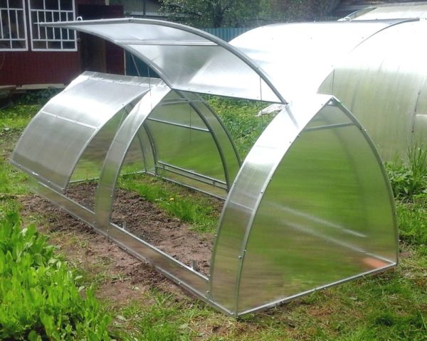 - 수평형. 이 경우, 화단 위에 작은 프레임을 설치하고 유리 프레임, 폴리카보네이트 또는 필름으로 덮습니다. 이 구조는 방풍성이 뛰어나고 열을 잘 유지합니다. 단점은 식물의 키가 작다는 것입니다.