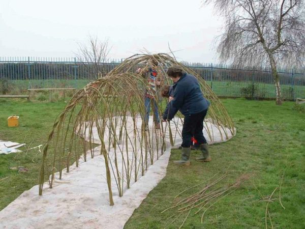 온실 아치를 만들 재료가 없다면 버드나무 막대로 만들 수 있습니다. 간단한 위커 온실을 만들려면 다음 단계를 따르세요.