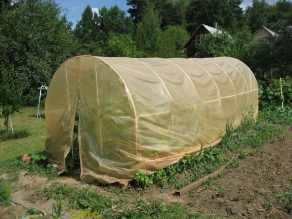 간단한 아치형 온실은 다양한 식물 재배에 널리 사용됩니다. 조립과 분해가 간편하기 때문에 아치형 터널은 계절에 따라 여러 번 이동할 수 있습니다. 봄에는 그 아래에서 푸른 작물이나 묘목을 재배하여 추위를 피하는 데 사용합니다. 5월 초에는 새로 심은 묘목 위에 아치를 설치하여 햇빛을 차단합니다. 한여름에는 딸기를 새로부터 보호하기 위해 터널을 딸기밭으로 옮깁니다. 아치는 보온을 위해 비닐, 그늘을 위해 아그로파이버, 또는 새로부터 보호하기 위해 어망으로 덮습니다.
