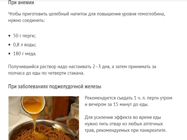 페르가에는 아미노산, 비타민, 유익한 미량 원소, 소화 효소, 식물 호르몬 및 성장 자극제가 많이 들어 있습니다.