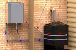 사우나 스토브는 화실 문이 옆방을 향하도록 설치하거나, 나무를 보관하는 스팀룸에 직접 설치합니다. 스토브 모델을 선택할 때 설계 단계에서 이러한 점을 고려하는 것이 중요합니다.