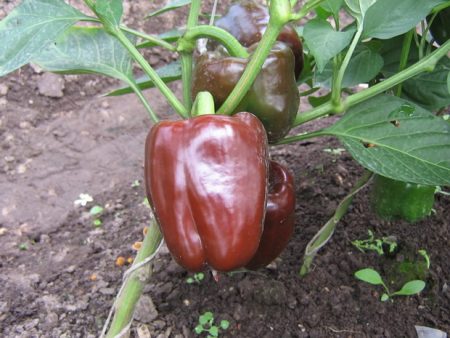 고추는 심은 지 85일 만에 열매를 맺습니다. 덤불은 키가 최대 1미터까지 자랍니다. 열매 자체는 무게가 최대 300g, 두께가 1cm에 달하는 거대한 것으로 여겨집니다. 고추는 약간 정육면체 모양이며 짙은 자주색입니다.