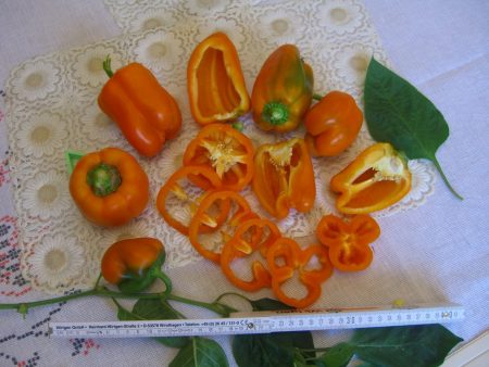 심은 후 90일이면 열매를 수확할 수 있습니다. 이 품종은 표준 품종으로, 키가 최대 70cm까지 자랍니다. 열매는 주황색이고 작습니다. 고추 하나의 무게는 최대 100g입니다. 이 품종은 생으로 먹거나 샐러드로 먹기에 적합합니다.