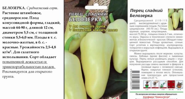 벨로제르카 단고추는 조숙성 품종입니다. 발아 후 140일째부터 수확이 시작됩니다. 열매는 매끈하고 원뿔 모양이며 세 면이 있습니다. 익으면 연녹색을 띠다가 노랗게 변하고, 완전히 익으면 빨간색으로 변합니다. 열매 하나의 무게는 90~140g입니다.