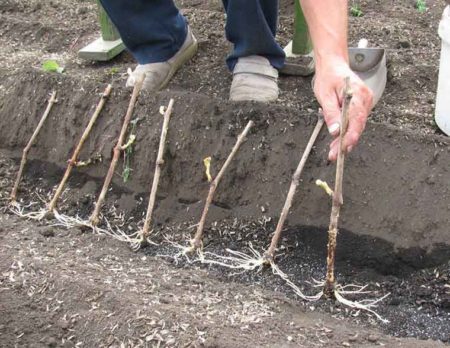 몇 주 후, 새싹에서 첫 잎이 나옵니다. 이는 뿌리 체계가 형성되었다는 것을 의미합니다. 꺾꽂이한 가지를 묘목장(별도의 묘목 재배용 화단)에 옮겨 심습니다. 묘목은 다음 해까지 자랍니다. 온실이나 실내에서 재배할 수 있습니다. 묘목이 한 살이 되면 영구 재배지로 옮겨 심습니다. 옮겨 심은 직후에는 햇빛을 차단합니다. 봄에 심으면 가을까지 잘 자라 다음 해 첫 수확을 거둘 수 있습니다.