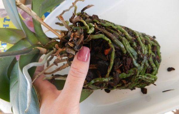 이 모든 징후는 식물이 좋지 않게 되었다는 것을 나타냅니다. 난초를 곧 옮겨 심지 않으면 점점 더 시들어 결국 죽을 것입니다.