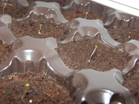 모종은 이탄 용기에 담아 관리하는 것이 일반적입니다. 발아 후 필름이나 유리를 제거하고 실내 온도를 약간 낮춥니다(섭씨 23도에서 섭씨 19도). 몇 주 후, 다시 원래 온도로 올립니다.