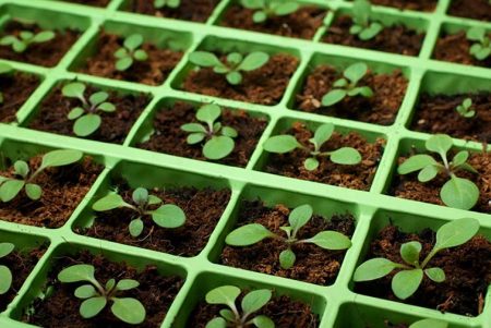 일년생 식물의 씨앗은 화분, 상자, 종이컵이나 플라스틱 컵, 이탄 정제에 심어 묘목으로 사용합니다.