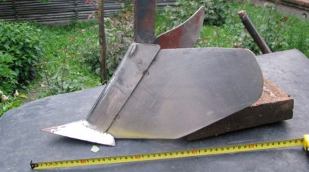 이제 수직 기둥 아랫부분에 칼날을 용접해야 합니다. 이제 DIY 수동 감자 쟁기가 완성되었습니다!