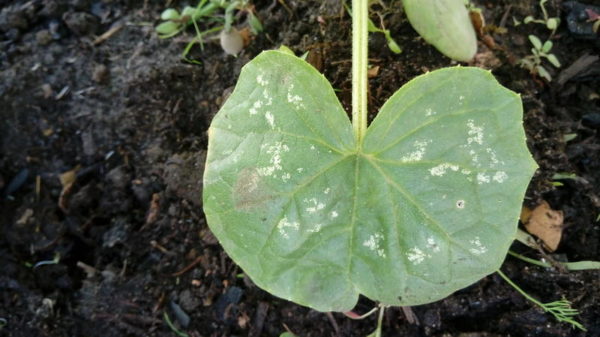 또 다른 유형의 곰팡이 감염은 오이 묘목과 다 자란 식물의 잎이 하얗게 변하는 것을 유발합니다. 증상은 일반적으로 잎 끝에서 나타나지만, 드물게는 잎 전체로 확산될 수도 있습니다. 질병이 진행됨에 따라 잎은 더러운 회색으로 변하고 말라 죽습니다. 이 시기에 이미 형성된 과일은 시들어 버립니다.