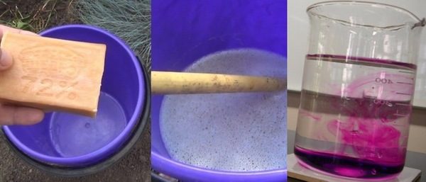 - 비누 용액으로 진딧물을 제거할 수 있습니다. 세탁 세제 반 개와 재 한 컵을 물 한 통에 녹이세요.