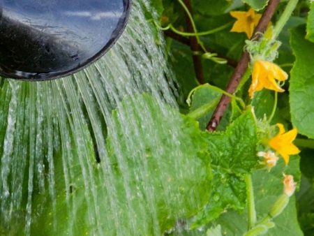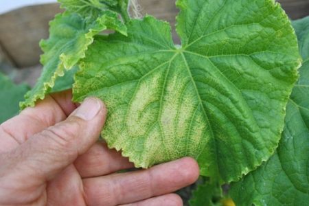 오이 잎이 누렇게 변하는 것을 막기 위해 케미라 럭스를 뿌립니다. 물 10리터당 케미라 럭스 20g을 사용합니다. 영양분이 더 빨리 흡수되는 잎 뒷면에 뿌립니다. 뿌리 썩음을 방지하기 위해 과망간산칼륨 용액을 한 달에 최소 두 번 물을 줍니다.