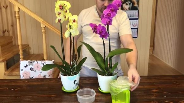 - 뿌리 내리는 방법: 화분에 심은 난초를 준비된 즙에 담그세요. 꽃을 이 용액에 40분에서 3시간 동안 담가 두세요.