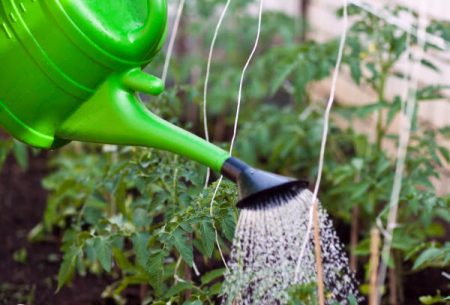 - 휴민산염과 니트로포스카를 기준으로 합니다. 니트로포스카 20g과 휴민산염 15ml를 10리터짜리 따뜻한 물통에 녹여 저은 후 뿌리에 물을 줍니다. 토마토 모종 하나당 1리터를 사용합니다.