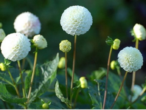 폼폼 달리아를 씨앗으로 재배할 때 키가 큰 품종을 발견할 수 있습니다. 가장 눈에 띄는 예는 다음과 같습니다.