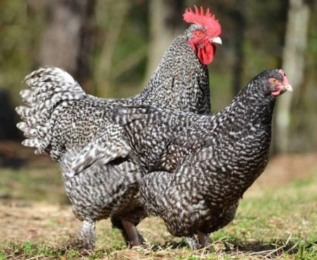 이 새는 크고 윤곽이 뚜렷하며, 독특한 색깔 무늬가 있습니다. 교배종은 깃털 색깔에 따라 12가지 변종이 있습니다. 러시아에서는 검은색과 파란색의 서식스 변종이 흔합니다. 우성종은 매년 평균 300개의 알을 낳습니다. 성체 암탉의 무게는 2.5kg, 수탉은 2.8kg입니다.