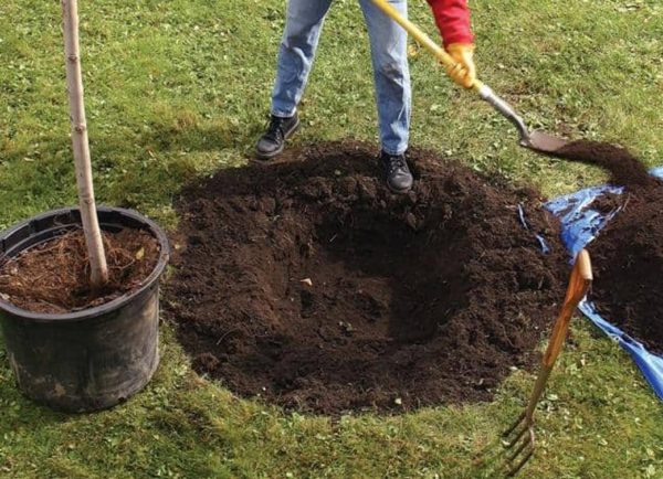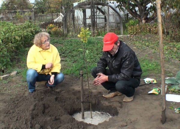 묘목을 심기 위해 정원사는 폭 1m, 높이 0.5~0.7m의 비옥한 흙더미를 만듭니다. 중앙에 말뚝을 박고 식물을 지지대에 묶은 후 뿌리까지 흙을 덮고 물을 줍니다.