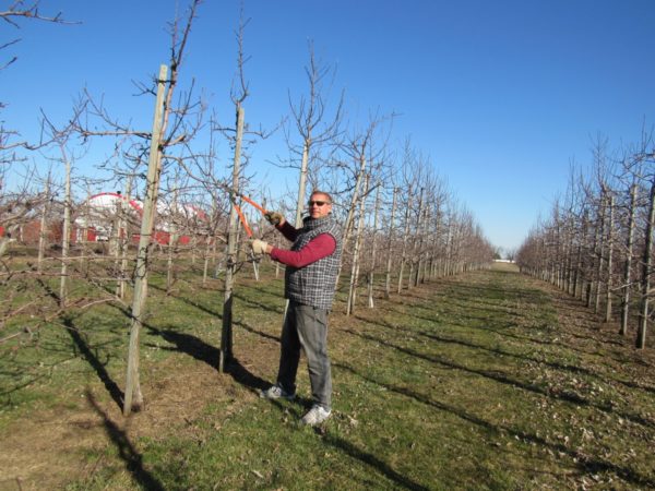 원주형 사과나무의 특징은 최소한의 가지치기만 필요하다는 것입니다. 생장 첫해에는 가지치기가 필요하지 않습니다. 2년차부터는 어린 가지를 두 개의 눈(bud)으로 잘라 가지치기를 하여 가지 모양을 만듭니다. 측지가 자라기 시작하면 가장 긴 가지(20cm)를 남기고 나머지 가지들은 짧게 자릅니다. 정단의 눈(bud)을 만지지 않도록 주의하십시오. 만지면 열매 생산량이 감소하고 나무가 고사할 수 있습니다. 가을에는 위생 가지치기를, 봄에는 형성 가지치기를 권장합니다.