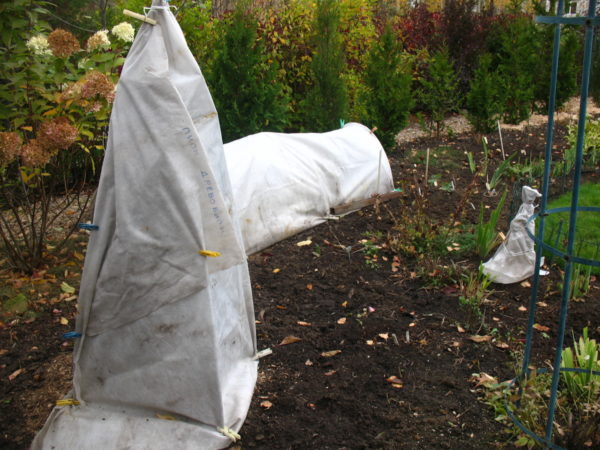시베리아와 우랄 산맥의 혹독한 환경에서 나무는 여러 겹의 보호막이 필요합니다. 묘목 주위에 판자를 깔고 그 안에 퇴비를 넣습니다. 보호막은 농용 섬유, 삼베 또는 스펀본드 섬유로 번갈아 감쌉니다. 겨울에는 보호막에 눈으로 듬뿍 덮습니다. 봄이 시작되면 덮개를 단계적으로 제거합니다.