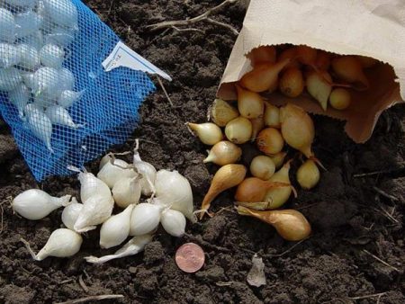 직경 14mm 이하의 구근은 겨울 심기에 가장 적합하지만, 작은 구근은 척박한 토양에서 얼어 예상 수확량을 얻지 못할 수 있다는 점을 명심해야 합니다. 직경 21mm 이하의 구근도 겨울에 심을 수 있지만, 봄 심기에 가장 적합합니다. 직경 25mm 이하의 큰 구근은 주로 녹색 채소용으로 심습니다. 이러한 점에서 초보자에게도 훌륭한 결과를 제공합니다.