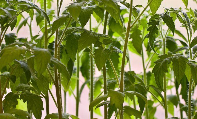 - 온도 체계가 교란되고, 빛이 충분하지 않으며, 식물이 너무 빽빽하게 심어져 있어 묘목이 뻗어 나가고 약하게 자랍니다.