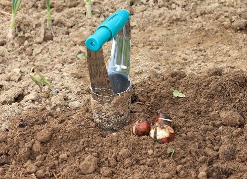 구근은 자주 심으며, 보통 추가 재배를 위해 별도의 모판에 심습니다. 줄 간격은 25~30cm를 유지합니다. 엇갈려 심는 경우 10~12cm 간격을 둡니다. 구근은 바닥이 아래로 향하도록 깊이 심고, 압력을 가하지 않은 상태로 윗부분을 흙으로 덮어 가볍게 다져줍니다.