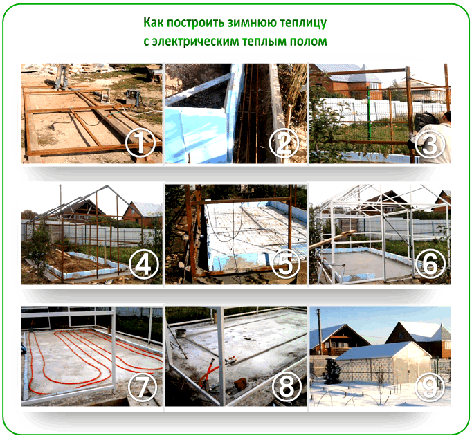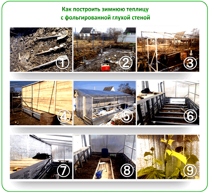 이제 겨울철 난방 온실을 직접 만드는 방법을 알아보겠습니다. 공간, 구성 요소, 그리고 작업자가 완전히 준비되면 공사가 시작됩니다. 온실은 최대한 기밀해야 하므로 시공 중 가동 중단이 없어야 하며, 설치가 지연되면 단열 효과가 떨어집니다.