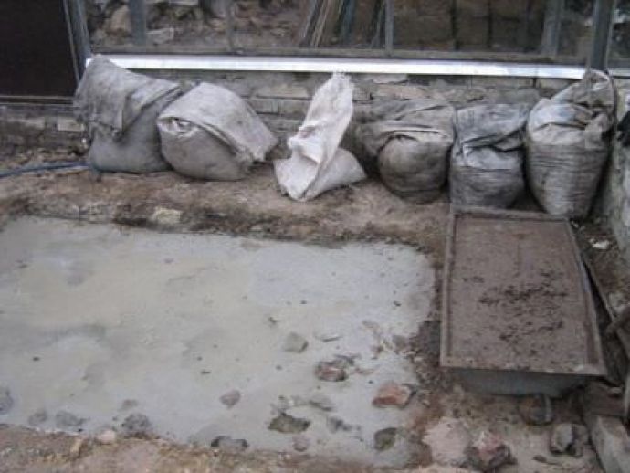 - 타설 콘크리트 패드를 만듭니다. 이 방법이 가장 좋습니다. 내구성이 뛰어나고 간단하며 온도 변화와 습기에 영향을 받지 않습니다. 모래와 쇄석을 수평을 맞춘 패드 위에 붓고 그 위에 시멘트를 바릅니다. 콘크리트는 약 하루 동안 양생한 후 설치를 시작할 수 있습니다.