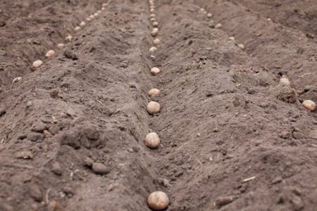 감자는 정원에 10~12cm 깊이로 심어야 합니다. 감자 사이의 최적 거리는 25cm, 줄 사이의 거리는 70cm입니다. 감자는 정기적으로 고랑을 만들고 잡초를 제거해야 합니다. 감자가 10~12cm 높이에 도달하면 고랑을 만들기 시작합니다. 이 작업은 비가 내린 후 토양이 촉촉할 때 수행합니다. 개화 직전에 고랑을 다시 만드는 것도 좋습니다.