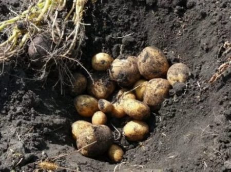 감자의 평균 수확량을 늘리려면 토양에 비료를 주는 것이 필수적입니다. 천연 비료가 가장 좋습니다. 거름이 좋은 예입니다. 잘 썩은 거름은 생장을 촉진하므로 가장 좋습니다. 여름 별장에서 감자를 고수확량으로 재배하려면 봄에 토양 1제곱미터당 요소 약 10g, 황화칼륨 약 10g, 재 약 50g을 100제곱미터의 땅에 시비합니다. 발아율을 높이려면 심기 전에 감자를 질산암모늄 용액에 한 시간 동안 담가둡니다. 질산암모늄 400g당 물 10리터를 사용합니다.