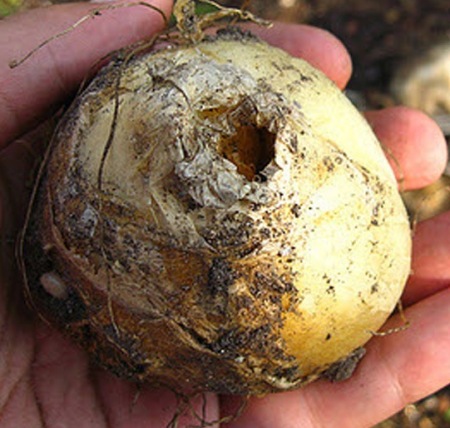 조언! 파기 과정을 미루지 마세요. 특히 큰 구근의 경우 더욱 그렇습니다. 구근은 휴면 상태에 들어가면 빠르게 썩거나 다른 질병에 걸리기 쉽습니다.