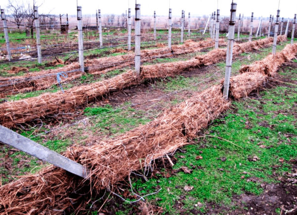 겨울이 추운 지역의 경우 포도 식물을 덮다 이는 필수적입니다. 겨울철에는 기온이 영하 30도 이하로 떨어지는 경우가 많습니다. 따라서 식물을 위한 든든한 보호막이 필수적입니다. 모래 토양에서 자라는 포도밭은 동해 위험이 높으므로 특히 세심한 단열이 필요합니다.
