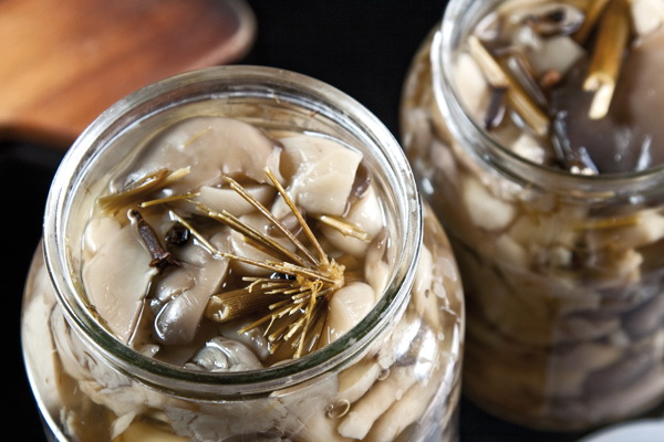 이렇게 버섯을 손질하려면 부드러운 스펀지로 자실체를 깨끗이 닦되, 씻지 마세요. 갓을 아가미 쪽이 위로 오도록 법랑 용기에 담습니다. 각 층에 소금을 뿌립니다. 마지막 층을 천으로 덮고 그 위에 접시를 놓은 후 물이 담긴 병으로 눌러줍니다. 4일 후 갓에서 즙이 나오면 작은 병에 옮겨 담아 냉장 보관합니다.